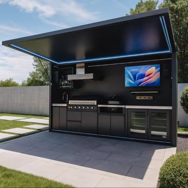 Durable All-season Black Stainless Steel Outdoor Kitchen Cabinet Bbq Grill Camping Outdoor Kitchen Bbq Island with Shed